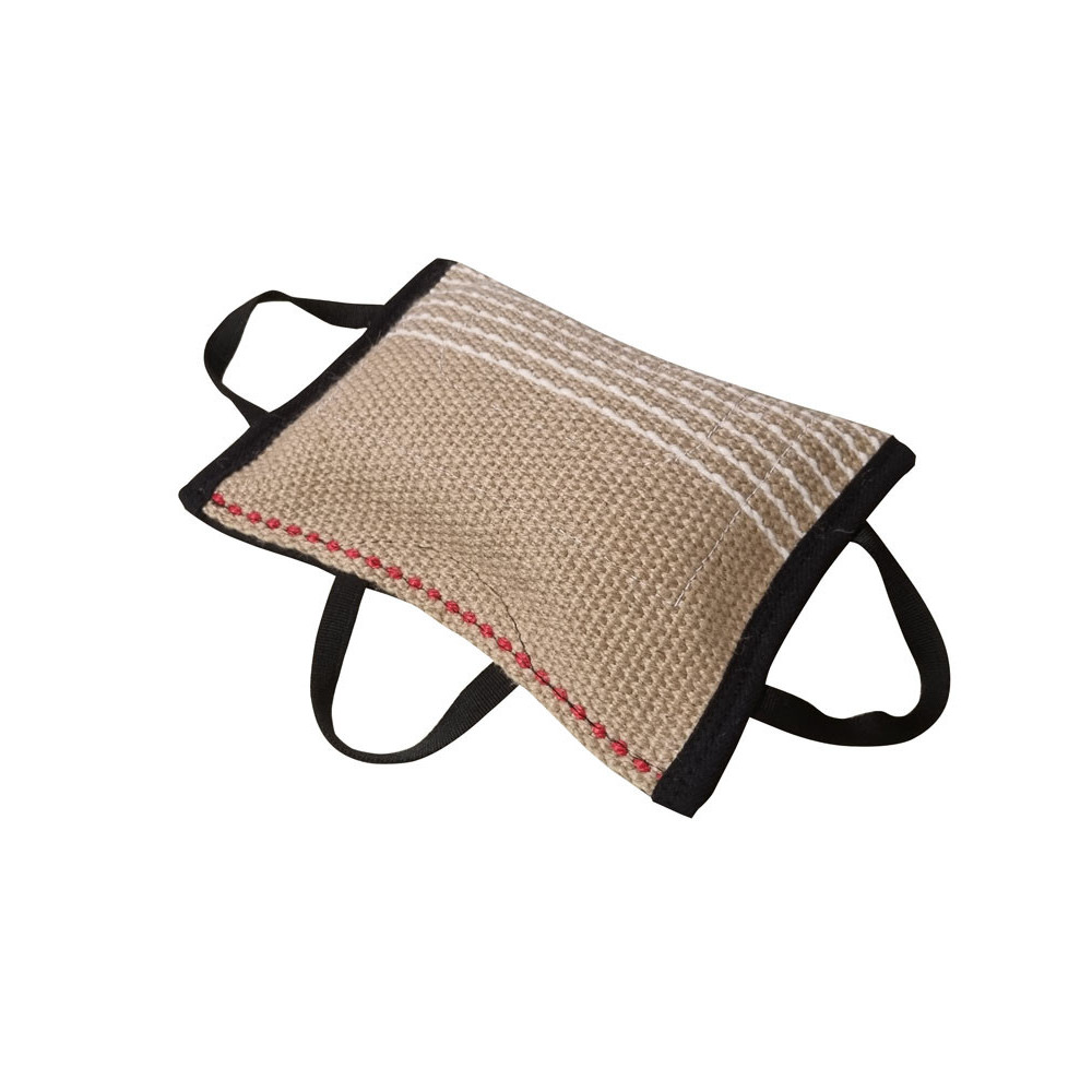 Cuneo con tre Maniglie in juta dimensione circa 37 x 27 cm e linee di rinforzo in juta bianca nella parte del morso