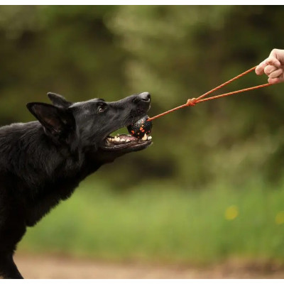 La Dog Ball on Rope è una palla estremamente resistente progettata per cani che amano tirare, inseguire, riportare e giocare in modo energico.
